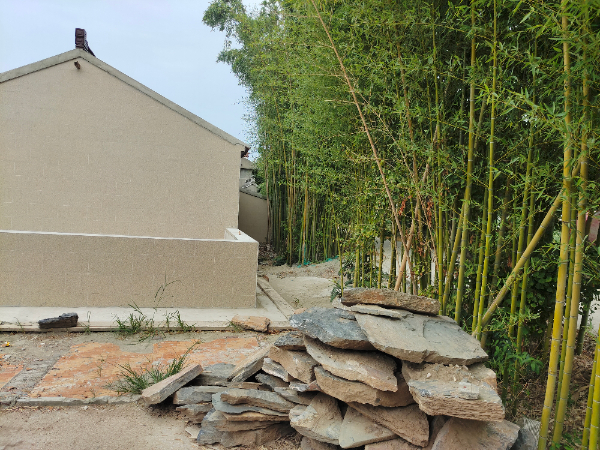 設(shè)計(jì)思路:在主體建筑的東側(cè),采用陣列的方式栽種9株中等落葉喬木,一是為了降低太陽(yáng)光對(duì)陽(yáng)光房的直射溫度,二是營(yíng)造貼近自然的生活環(huán)境,三也不會(huì)影響冬日的陽(yáng)光采集。在主體建筑的正南方,采用業(yè)主家多余的青磚進(jìn)行鋪地,使整個(gè)庭院的風(fēng)格更加的淳樸自然。